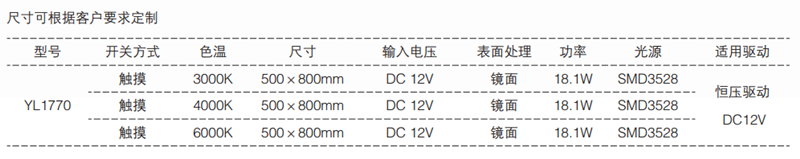 LED四面發光鏡門板燈YL1770 適用范圍 應用于浴室柜 特點 ? 無影燈設計,巧妙回避逆光、光線不足的尷尬,提供最專業的化妝光線。 ? 觸摸式感應開關,美觀大方。 安裝說明 型號 尺寸可根據客戶要求定制。 搜索: 關于宜琳 ? 宜琳簡介 ? 宜琳資質 ? 宜琳歷史 ? 品牌故事 ? 聯系宜琳 企業產品目錄 ? 鏡燈 ? 射燈 ? 柜底燈 ? 柜內燈 ? 家具燈 ? 層板燈 ? 軟燈帶 ? 電源 ? 感應器及配件 ?美妝冰箱