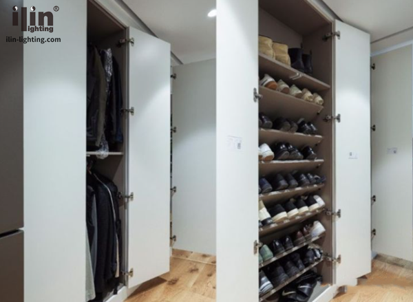 西廚衣柜以及鞋柜收納超級強大,鞋柜做了斜板收納,節省空間的同時滿足收納。