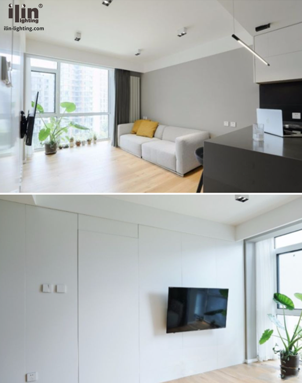 一個人住的開間戶型,本身戶型只有一個衛生間,其他都是開放式,但是為了能住的舒適一點,打算單獨分割出一間臥室,格局重新改變。設計師進行改造之后,使用了大量的局部照明,不僅能照明,還能起到軟隔斷的作用,下面就和宜琳照明ilin一起來看看吧!
