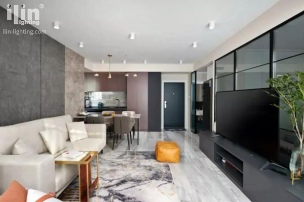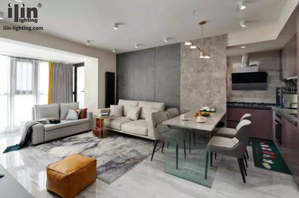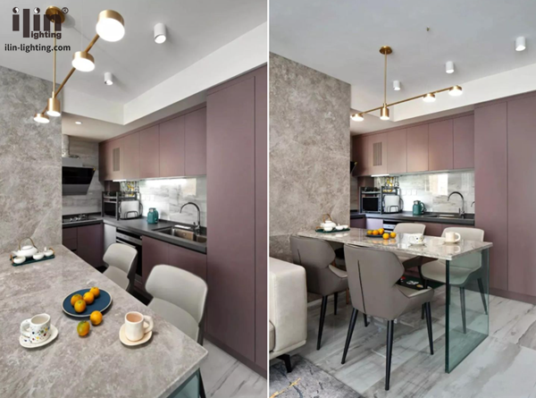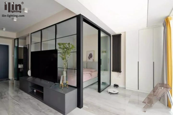 這是個一廚一衛一開間一個陽臺就是全部的戶型,比較亮眼的是臥室沒有采用墻體隔斷,而是顧及到采光用玻璃隔斷,隱私和采光兼具了。當然,像宜琳櫥柜燈這種局部照明燈具也是用到了,開放式廚房里就能看到,下面和宜琳照明ilin一起來看看吧。