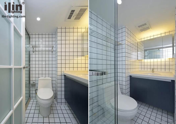 一樓衛(wèi)生間本身就是暗衛(wèi),所以采用經(jīng)典的小白磚鋪貼,右手定制浴柜鏡柜滿足基本洗漱,鏡柜上下嵌入式櫥柜燈帶布局,暖色可以讓空間溫馨,左手角落單獨的淋浴空間分割。