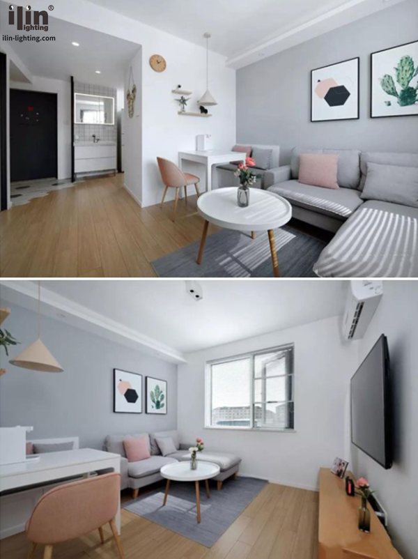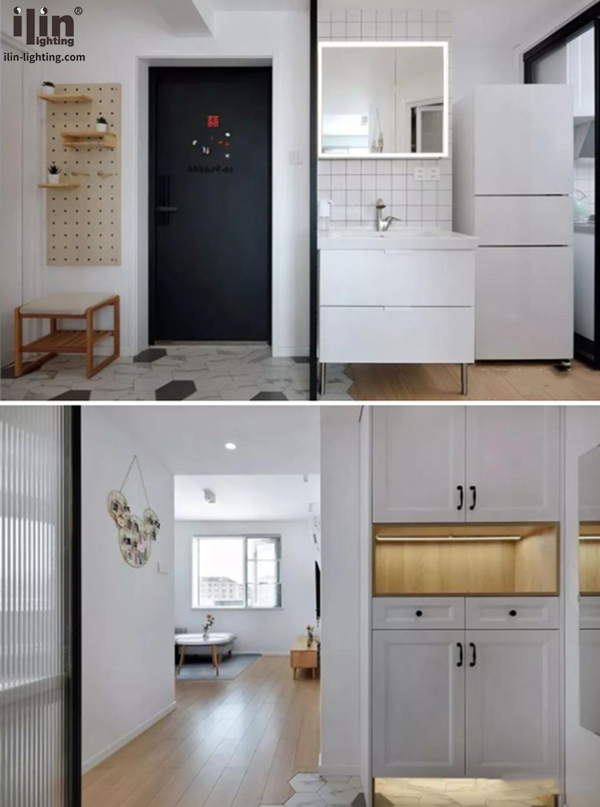 小戶型不怕空間小,就怕空間又小而且沒有光線,空間小可以按照小體量的家具設計,但是光線不好,唯一的出路只能改變格局。宜琳照明ilin下面要分享的案例就是一個客廳和臥室互換格局的案例,就是為了改善光線問題,當然,櫥柜燈這種局部照明也都做足了,看起來效果不錯。
