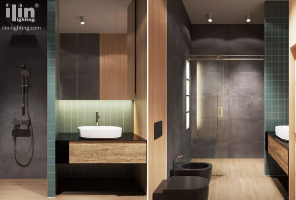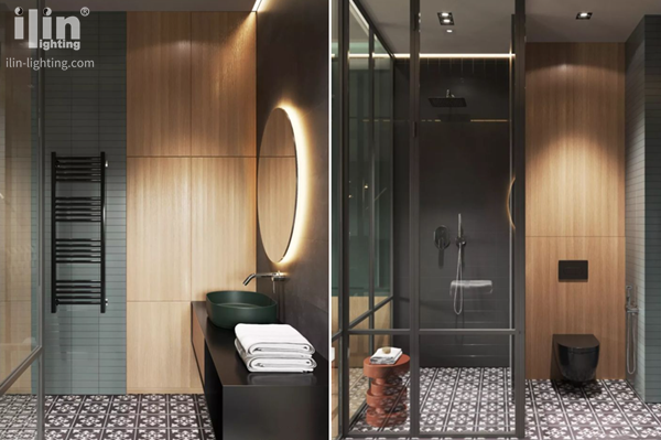 而過道另一側的木質壁柜,則與家中的第一個衛生間相連。干區和濕區以一道玻璃移門相隔,彼此分離卻又保持視線上的聯系。拉長的鏡面柜承擔了儲物功能,在一定程度上還產生空間擴容的感覺。別看這個小衛生間面積不大,但是里面的壁掛式馬桶、婦洗盆、洗漱臺、淋浴間、暖氣片一應俱全,榨干了每一平米后,還順便置入了洗衣間的功能,實在是太強大了!
