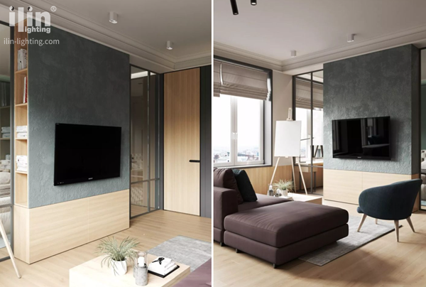 客廳電視墻居中擺放,既承擔了收納、隔斷的作用,又分別明確了主臥與客廳的動線。從側面挖掘出的儲物空間,可用來放置書籍、裝飾品或小雜物,由此減輕了不少地面壓力,也不失為一個小戶型值得借鑒的設計。造型簡約的沙發、茶幾等必備陳設,也都遵循著功能至上的原則,勾勒出一個溫馨休閑的家居氛圍。