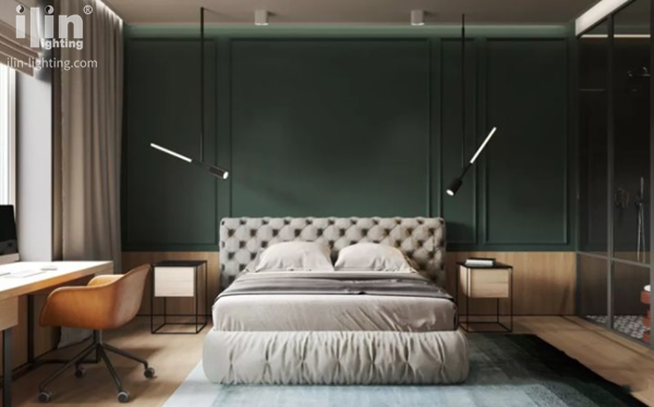主臥窗臺前增加了一張辦公桌,看起來既通透又明亮,再加上麻質卷簾用來過濾光線,由此促成一個新的功能區的誕生。干凈簡潔的金屬線條和框架,巧妙地展現于主臥的各個細節中,一方面讓空間氣質得到升華,另一方面又營造出一個無比利落的睡眠環境。