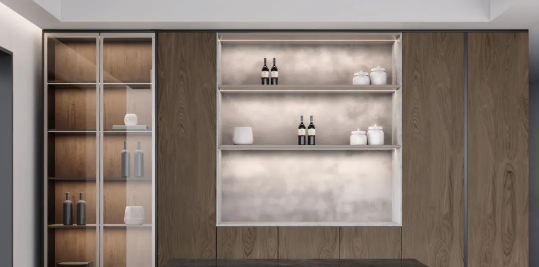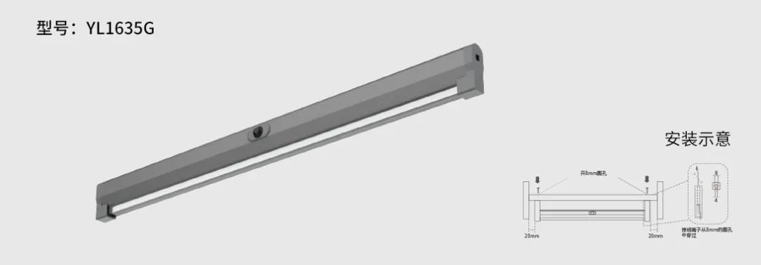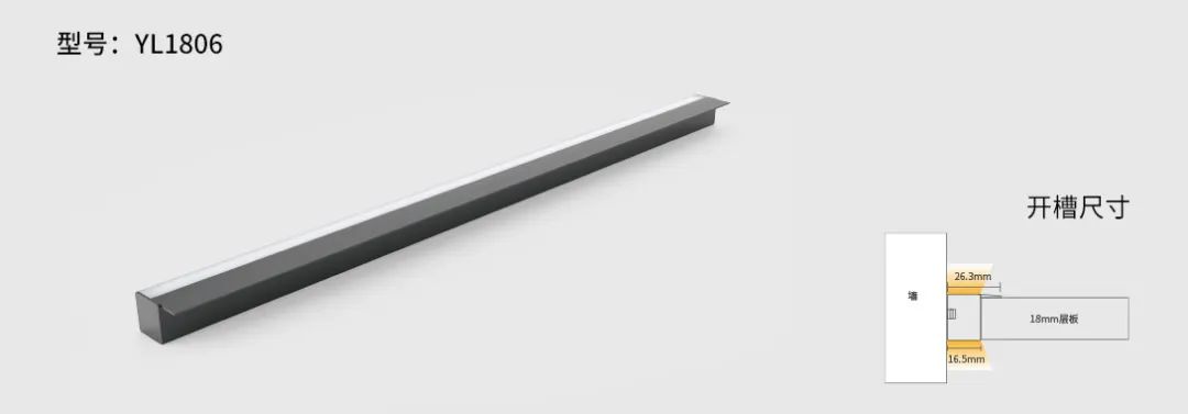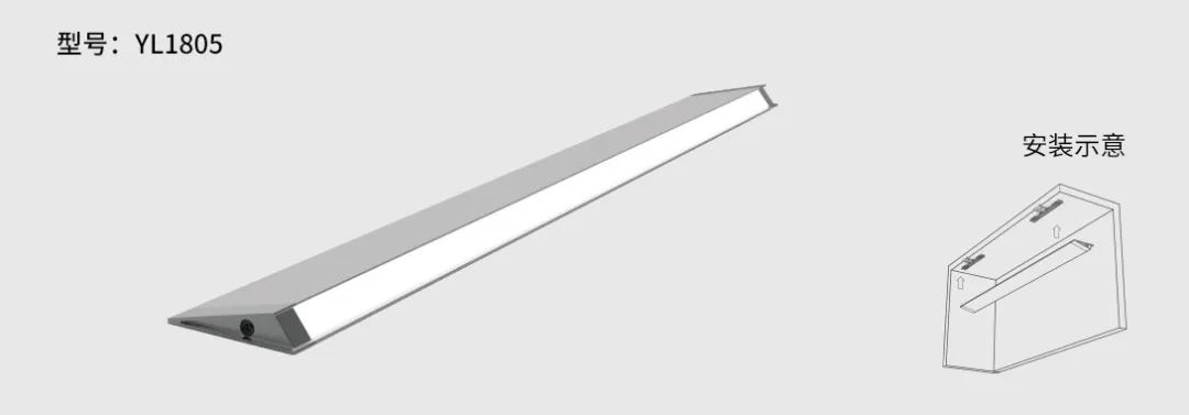 流線型設計,此款燈體金屬質感強,氣質厚度沉穩,安裝方式為開槽嵌入式安裝,融入柜體中,真正的無???縫安裝。嵌入柜體中照明,光線充滿柜內,柔和護? 眼。另此款產品可定制手掃感應款。