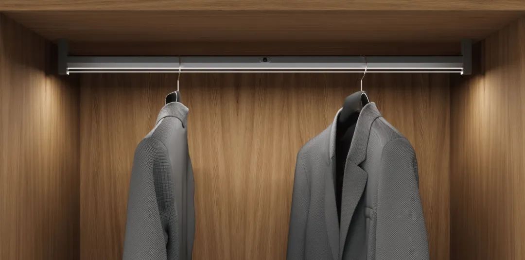 采用SMD2835高效LED光源,顯色性好,色溫穩定。帶人體紅外感應,當開啟衣柜感應到人運動時自動點亮,延時關閉,選用優質鋁合金材料,陽極氧化處理,不變色。外觀精美厚重,承重60公斤不變形。適合定制家具的安裝及后裝。