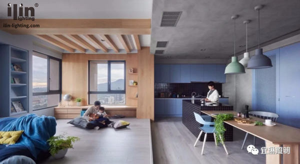 餐廚式客廳就是宜琳照明之前說過的“客餐廚一體空間”,廚房是開放或半開放形式,與餐廳和客廳自然連接,三位一體的設(shè)計(jì)方便所有人交流。