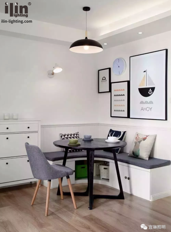 卡座以往都是在外面的飯店才能看到,個人家庭很少見,但隨著設計流行趨勢的改變,還有人們對空間利用的變化,卡座在很多家庭餐廳里開始出現了,尤其是小面積住宅。餐廳要容納餐桌、椅子、餐邊柜等家具,從設計上來講美觀和實用都是難題,所以集成用餐座位、餐邊柜功能的卡座就有了優勢,功能密集的地方,宜琳局部照明解決方案也可以大顯身手,卡座設計得時髦好用,少不了局部照明的功勞。