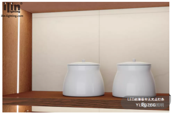 想要裝飾性更強的柜內(nèi)燈,就可以選擇宜琳照明【LED超薄極窄無光點燈條YL2026G】,超薄、極窄可以在櫥柜內(nèi)部豎裝,如果是頂天立地的大櫥柜可以考慮用它從上照到下!玻璃柜門的櫥柜用這款燈具會顯得更加簡潔,提升櫥柜顏值。